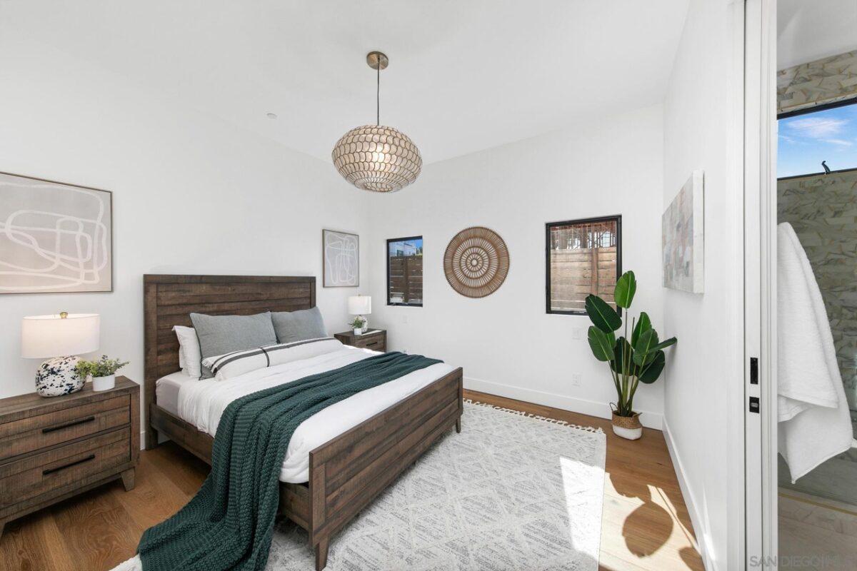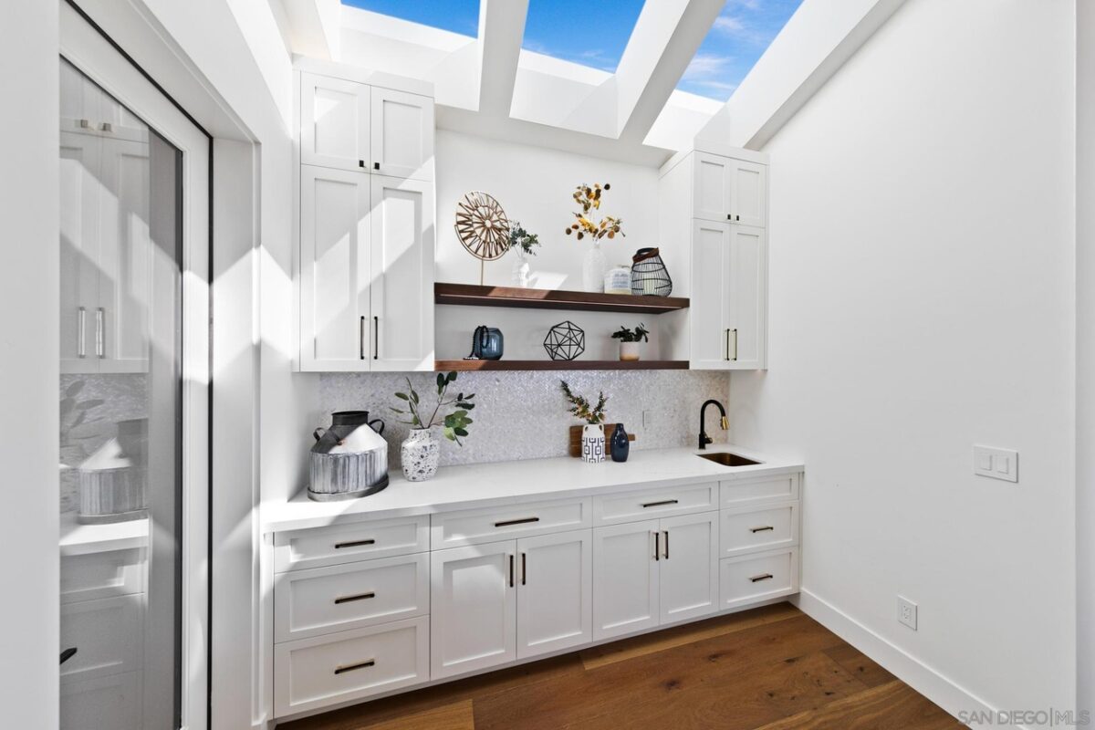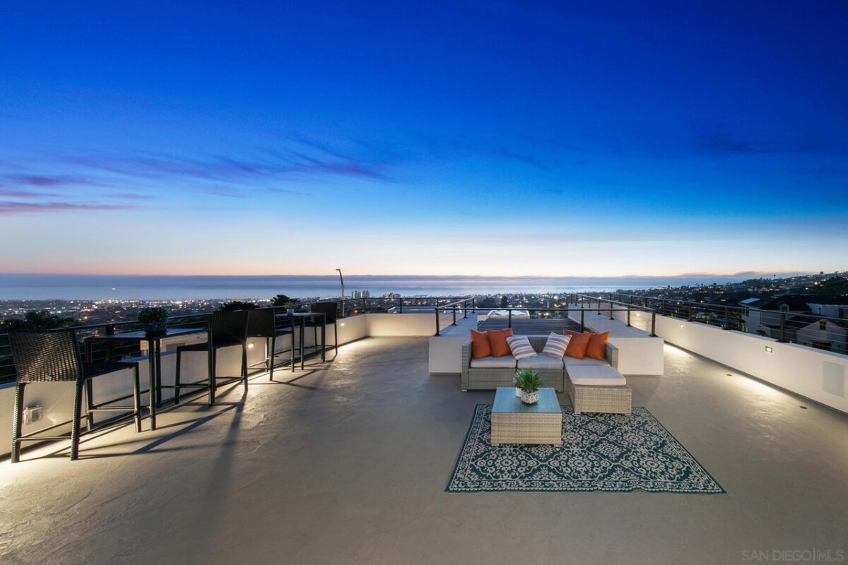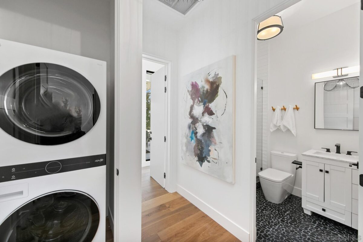Welcome to where your soul will feel at home: Gordon Lane! The legendary PB surfboard brand (Founded by Larry Gordon) justifiably gets the recognition in the best sunlight – big, wide ocean views, clear sight of the breakpoints for surf, sun and sailing days and admiring the sunsets from the only brand new community in Pacific Beach. When you waltz into this home you will immediately feel the love and care that has gone into Gordon Lane. Luxury begins with the 10’ front door and windows casing the entry walkway, 12’ ceilings and angelic floating staircase all with a stunning view of the even more impressive green, blue, custom palm leaf tile and sunken fire pit yard. Did someone say there was a hidden door to the ADU? Yes! We hired James Bond for that idea (maybe, guess you will never know until you see the disclosures!). We won’t bore you with all of the extras – they are all here; whole house speakers, salt water pool, solar, top of the line appliances, a master closet the size of your first apartment, blah blah blah. The home is perfect for entertaining large parties and yet it’s also perfect for an intimate, quiet evening at home with your cup of coffee, or tequila, your choice. When you see what is in store for you, you will will never want to leave. Soak in every last sparkle of the water, light, skyline and hey! don’t miss that green flash (yes, it really exists!). The views will take your breath and your motivation for being anywhere else away before you can say, Gordon Lane!