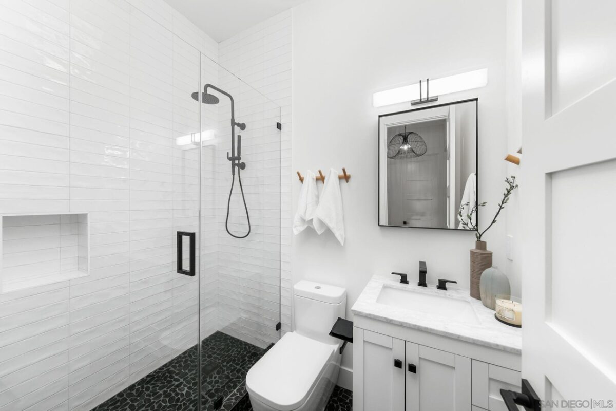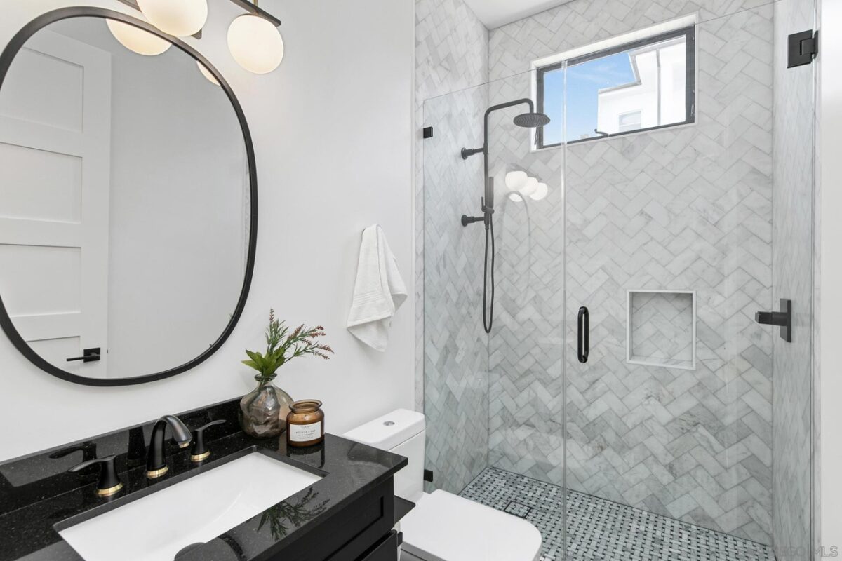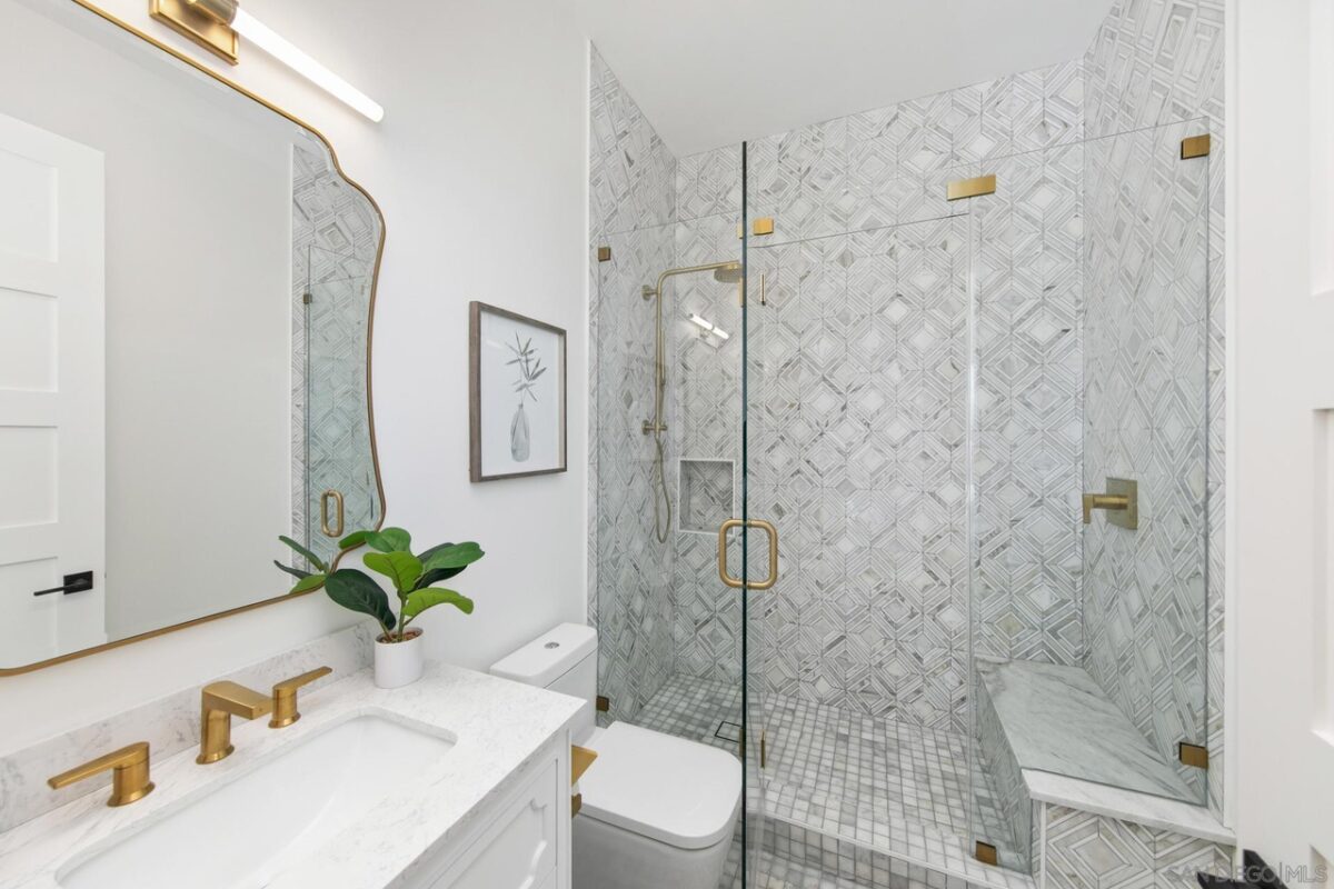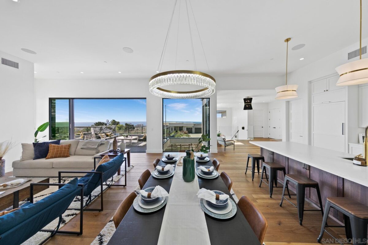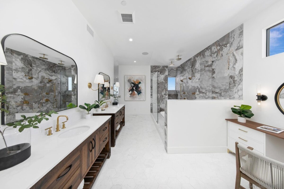 Welcome to where your soul will feel at home: Gordon Lane! The legendary PB surfboard brand (Founded by Larry Gordon) justifiably gets the recognition in the best sunlight – big, wide ocean views, clear sight of the breakpoints for surf, sun and sailing days and admiring the sunsets from the only brand new community in Pacific Beach. When you waltz into this home you will immediately feel the love and care that has gone into Gordon Lane. Luxury begins with the 10’ front door and windows casing the entry walkway, 12’ ceilings and angelic floating staircase all with a stunning view of the even more impressive green, blue, custom palm leaf tile and sunken fire pit yard. Did someone say there was a hidden door to the ADU? Yes! We hired James Bond for that idea (maybe, guess you will never know until you see the disclosures!). We won’t bore you with all of the extras – they are all here; whole house speakers, salt water pool, solar, top of the line appliances, a master closet the size of your first apartment, blah blah blah. The home is perfect for entertaining large parties and yet it’s also perfect for an intimate, quiet evening at home with your cup of coffee, or tequila, your choice. When you see what is in store for you, you will will never want to leave. Soak in every last sparkle of the water, light, skyline and hey! don’t miss that green flash (yes, it really exists!). The views will take your breath and your motivation for being anywhere else away before you can say, Gordon Lane!