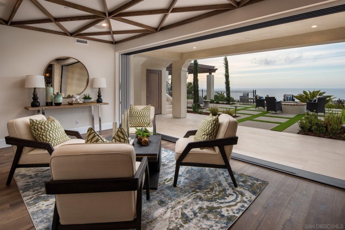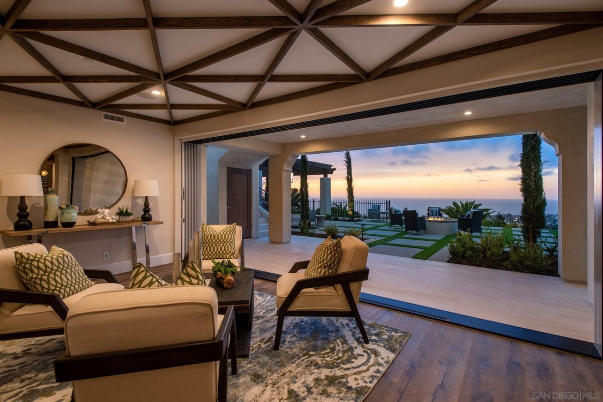 Additional features include an beautiful “prep kitchen” that is hidden behind the main kitchen; wifi enabled Thermador appliances; state of the art “workstation” six foot long kitchen sink by The Gallery, gated motor court that doubles as parking and/or bonus space to play; integrated audio system indoors and outdoors; security cameras; two laundry rooms; outdoor kitchen; and so much more. Property is 100% new construction (not a remodel) and is complete as of March 2021. Built by the renowned and meticulous Redline Custom Contracting. Architecture by award winning Golba Architects. Interior design by award winning Dawn Davidson of Design Line Interiors. The Muirlands neighborhood in La Jolla mostly traverses the western slopes of Mount Soledad. It is known for enchanting roads, gated estates with expansive grounds, and some of the best views available in the ZipCode. Muirlands is one of the most established parts of La Jolla where homes rarely exchange hands, which makes Muirlands Drive exceptionally unique as a brand new residence on a premium lot with unobstructed views.